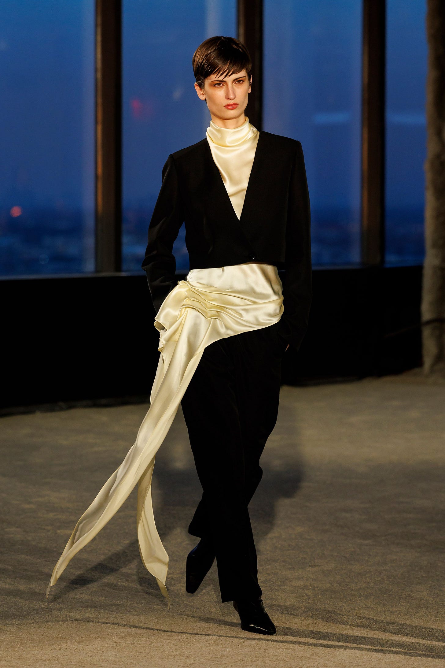This look by Kallmeyer is the one that really stayed with me. It hasn’t left my mind since. Buy a silk scarf as soon as possible, because it feels like the only natural evolution of the bandana we were all wearing on our hips this summer.