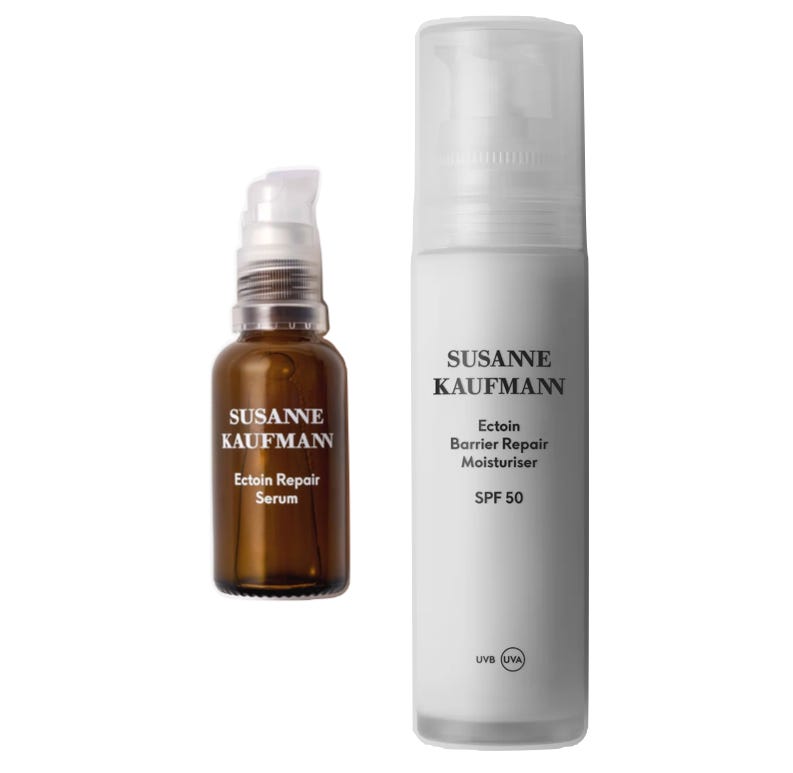 London was recently blessed with a few proper days of sun. Around the same time, I repurchased my usual retinol serum, which means SPF is no longer optional if I want to avoid long-term skin damage. Luckily, my long-time favourite brand, Susanne Kaufmann, came to the rescue with two new heroes that have quickly became staples in my routine: the Ectoin Repair Serum and the Ectoin Barrier Repair Moisturiser SPF 50.