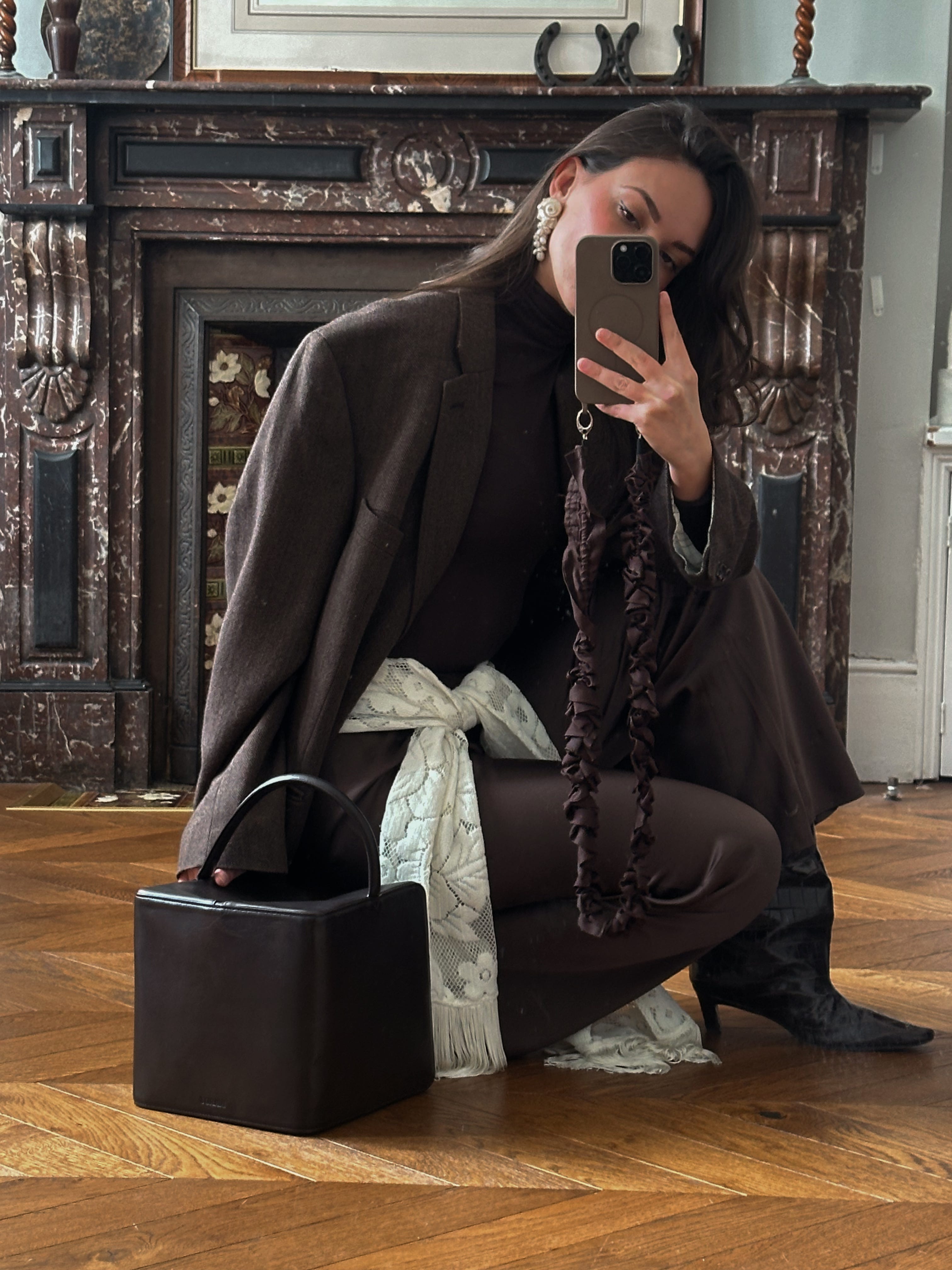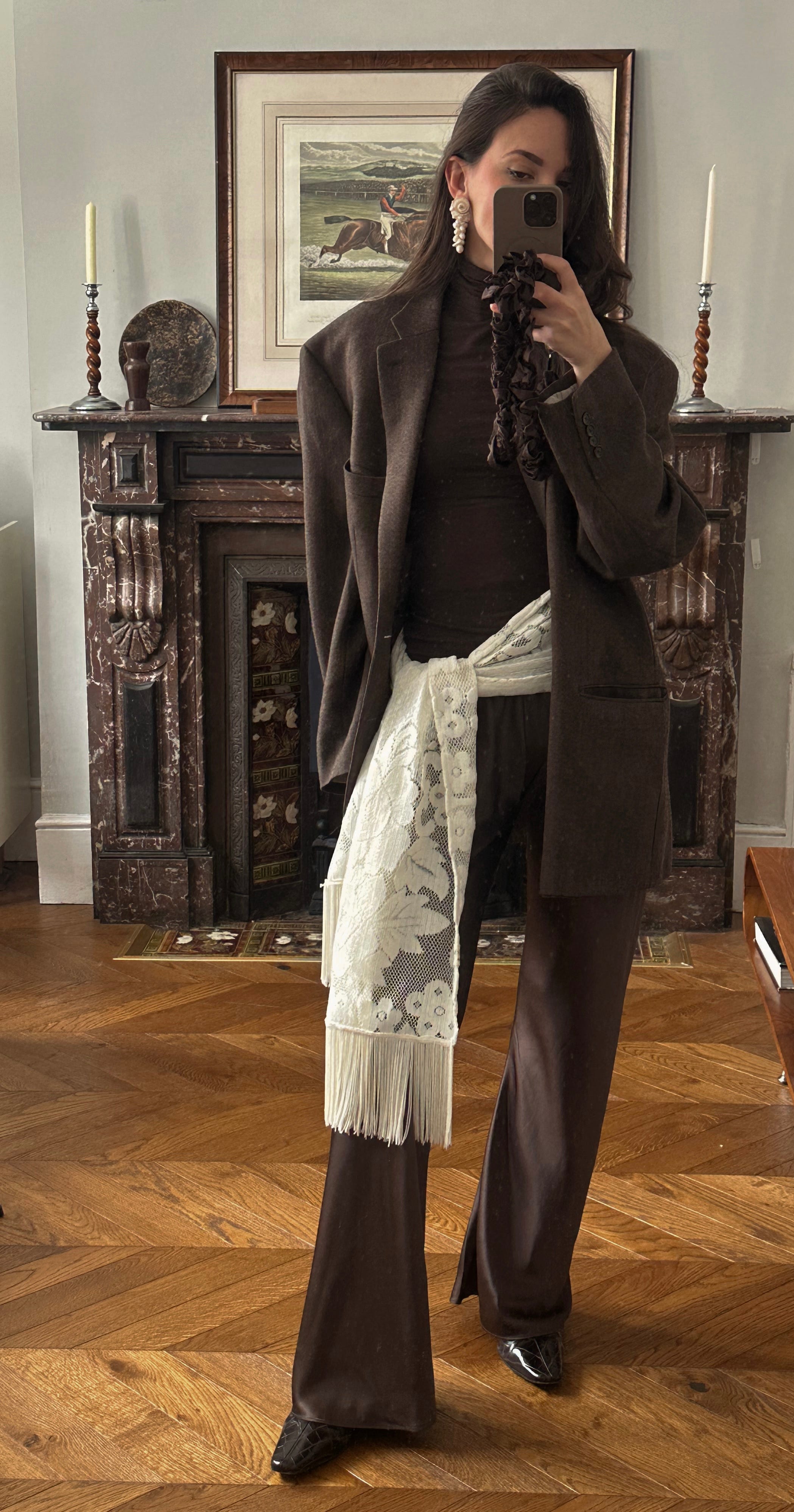 I’m still not over a good brown-on-brown look. There’s something about it that just feels very me. It’s a palette I return to instinctively. What I love most is how it lets me play. This one, I have to say, I’m very proud of. It feels considered but not overworked, which is always the sweet spot.