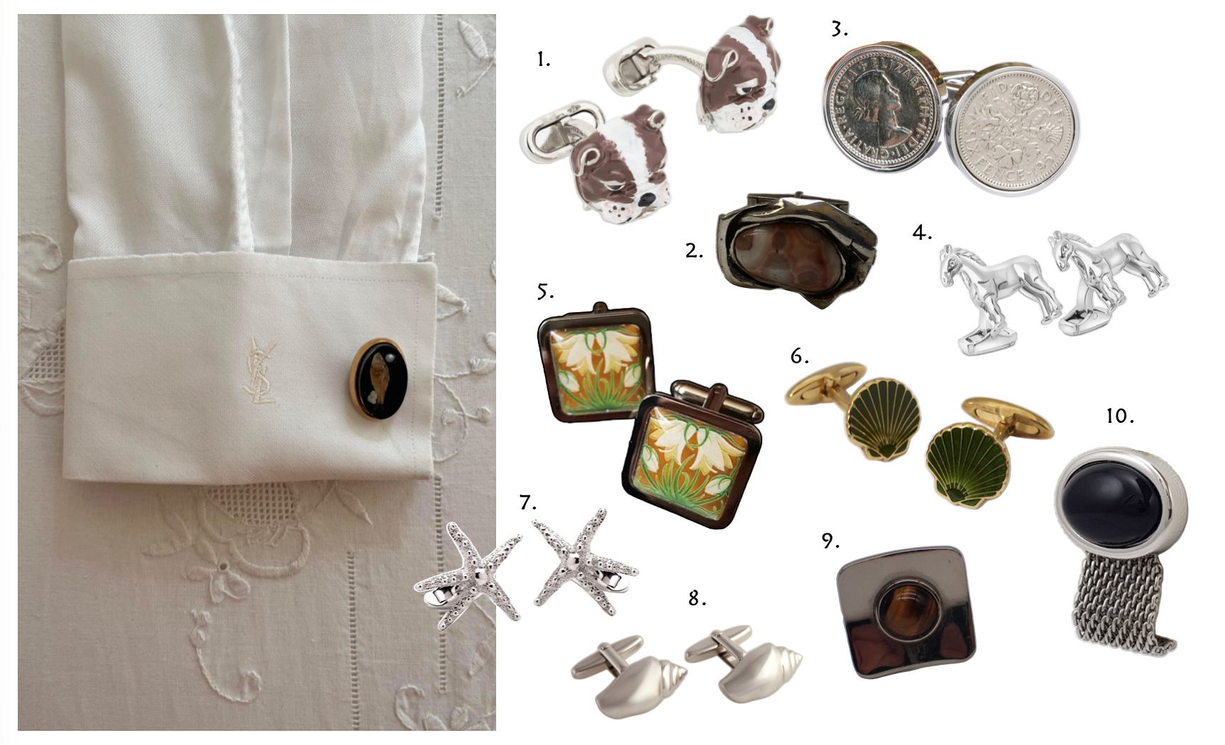 I like to imagine that the gentleman, perhaps hoping for a bit of extra luck, was also adding something personal to an otherwise simple white shirt. It made me realise how easily we can do the same by choosing cufflinks that bring a little character to our crisp spring shirts. Ultra cool!